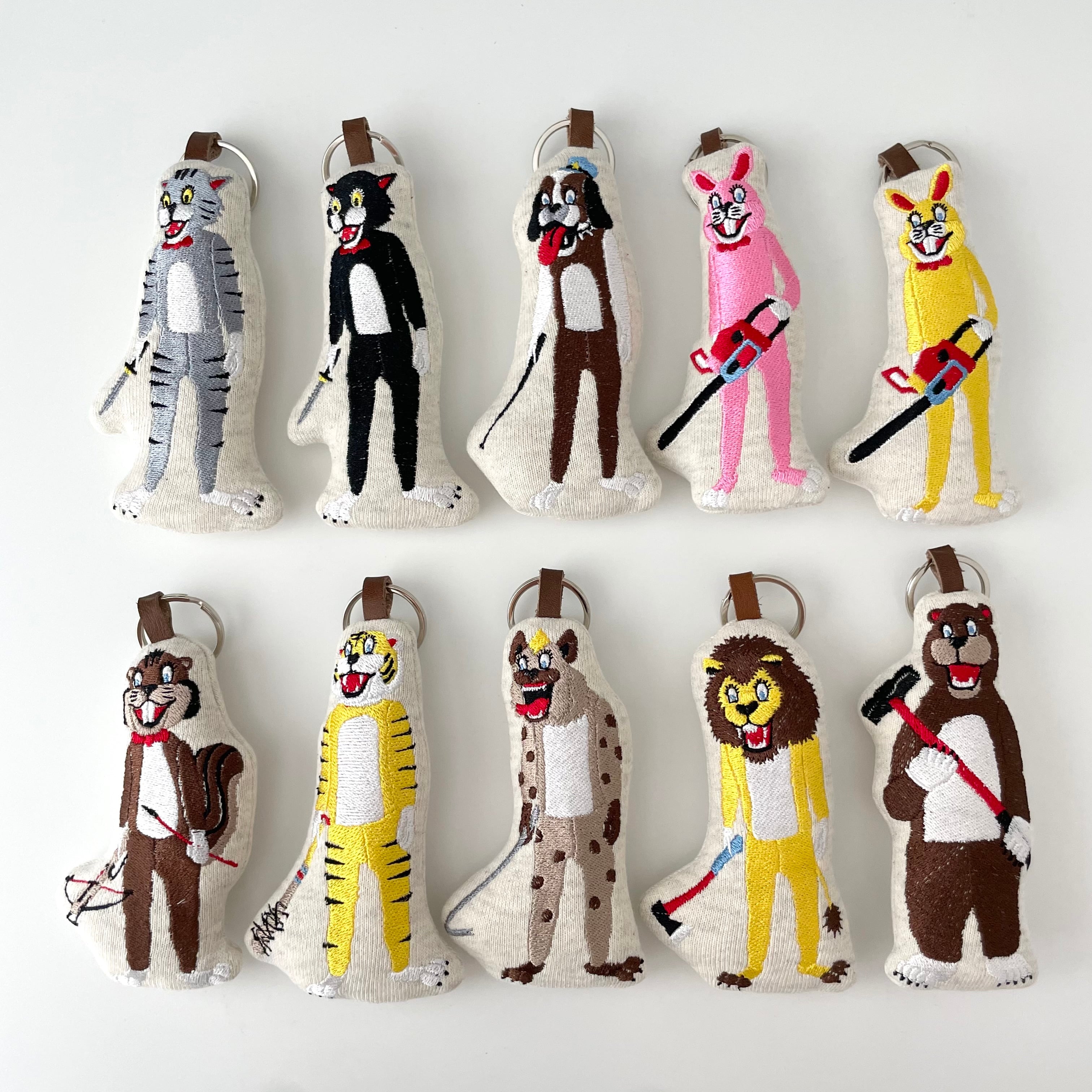 綿をたっぷり詰めて、握り心地の良いキーホルダーです。 【素材】 表:コットン 刺繍糸:ポリエステル 中綿:ポリエステル 【サイズ】タテ12.5cm×ヨコ7.0cm リング直径3cm 【注意点】 ・刺繍はミシン刺繍ですが、一点一点手作業で製作しております。 ・お使いの端末や閲覧環境により、写真と実物の色味が多少異なって見えることがございます。ご了承下さい。 【配送について】 クリックポスト(全国一律・追跡可)でのお届けとなります。