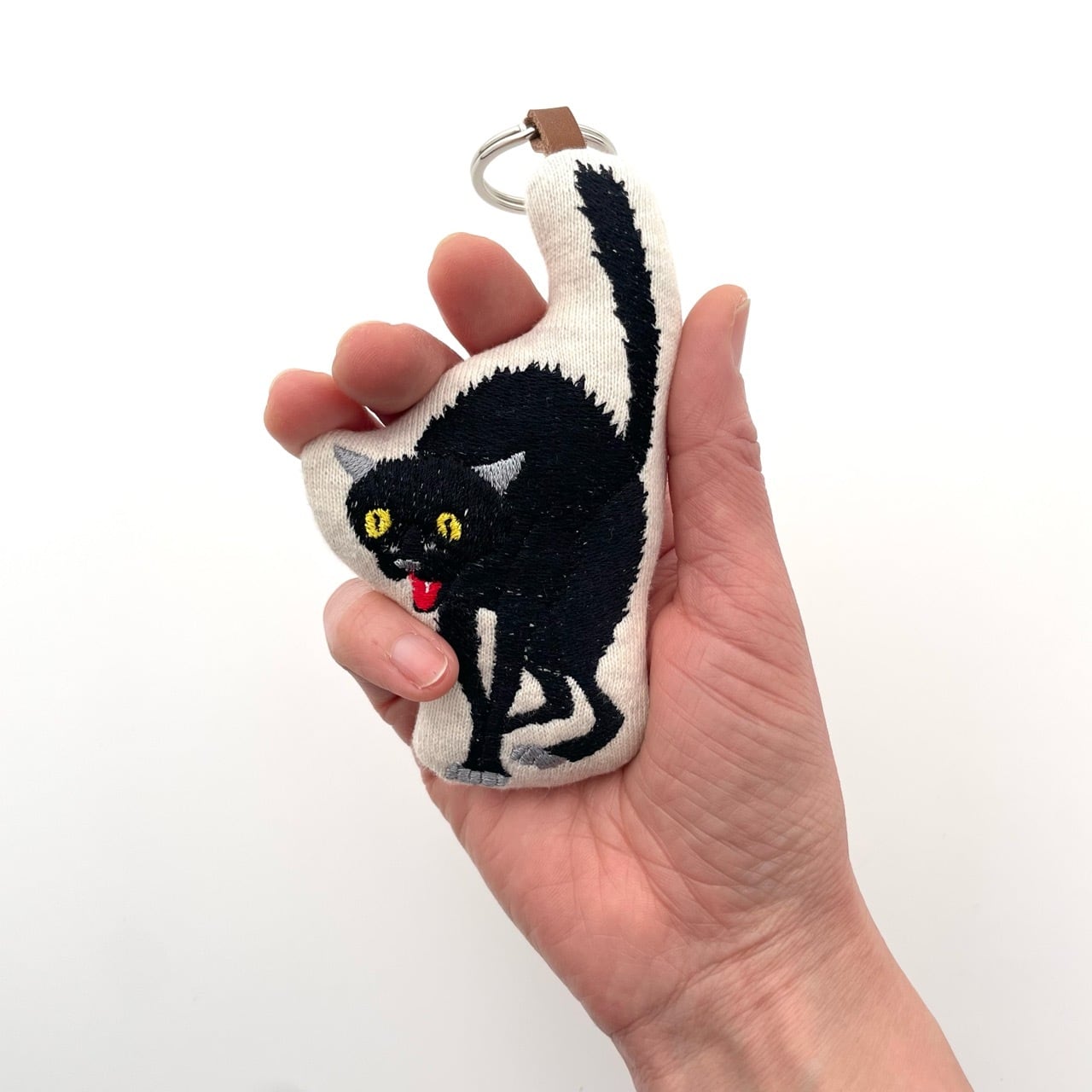 綿をたっぷり詰めて、握り心地の良いキーホルダーです。 【素材】 表:コットン 刺繍糸:ポリエステル 中綿:ポリエステル 【サイズ】タテ12.0cm×ヨコ7.0cm リング直径3cm 【注意点】 ・刺繍はミシン刺繍ですが、一点一点手作業で製作しております。 ・お使いの端末や閲覧環境により、写真と実物の色味が多少異なって見えることがございます。ご了承下さい。 【配送について】 クリックポスト(全国一律・追跡可)でのお届けとなります。