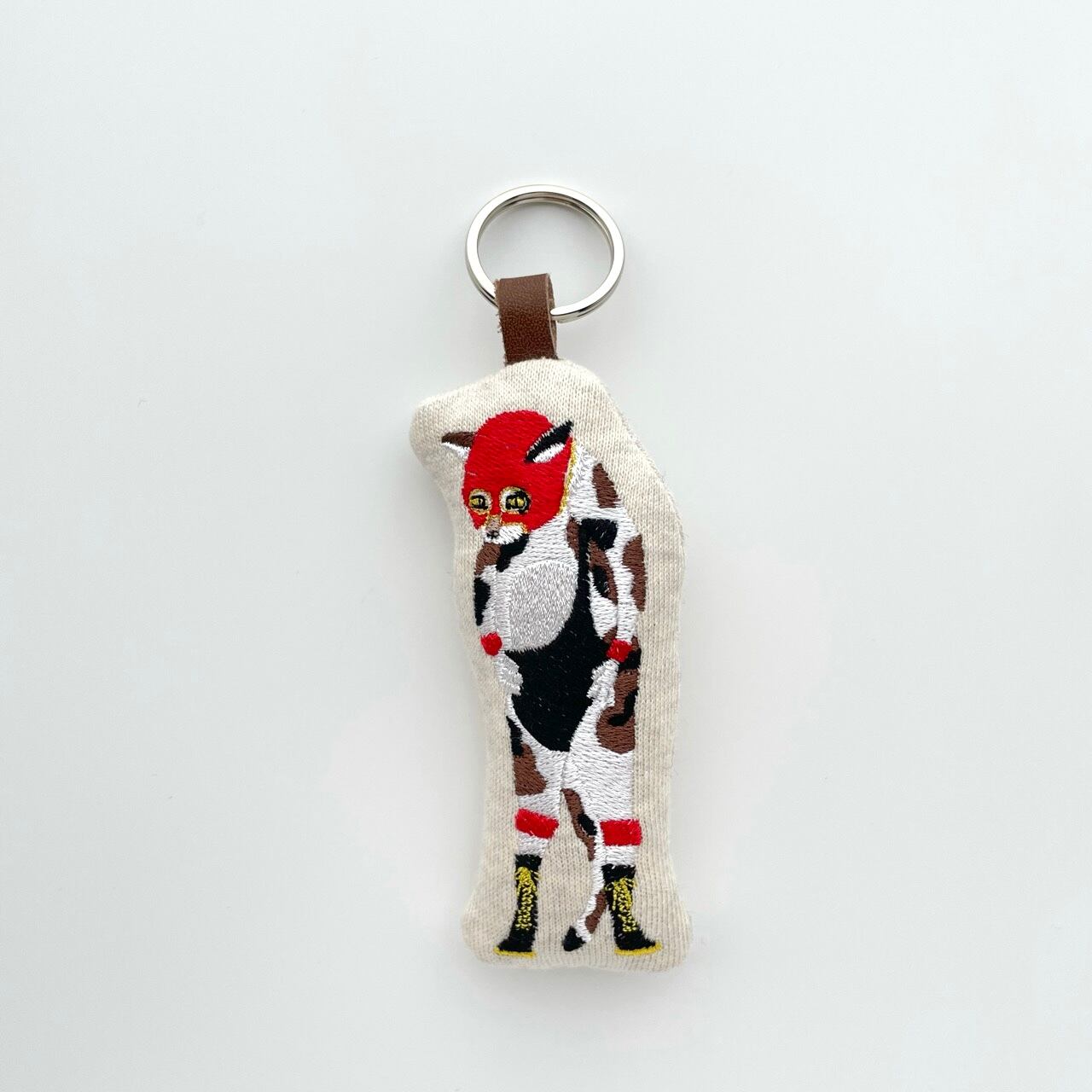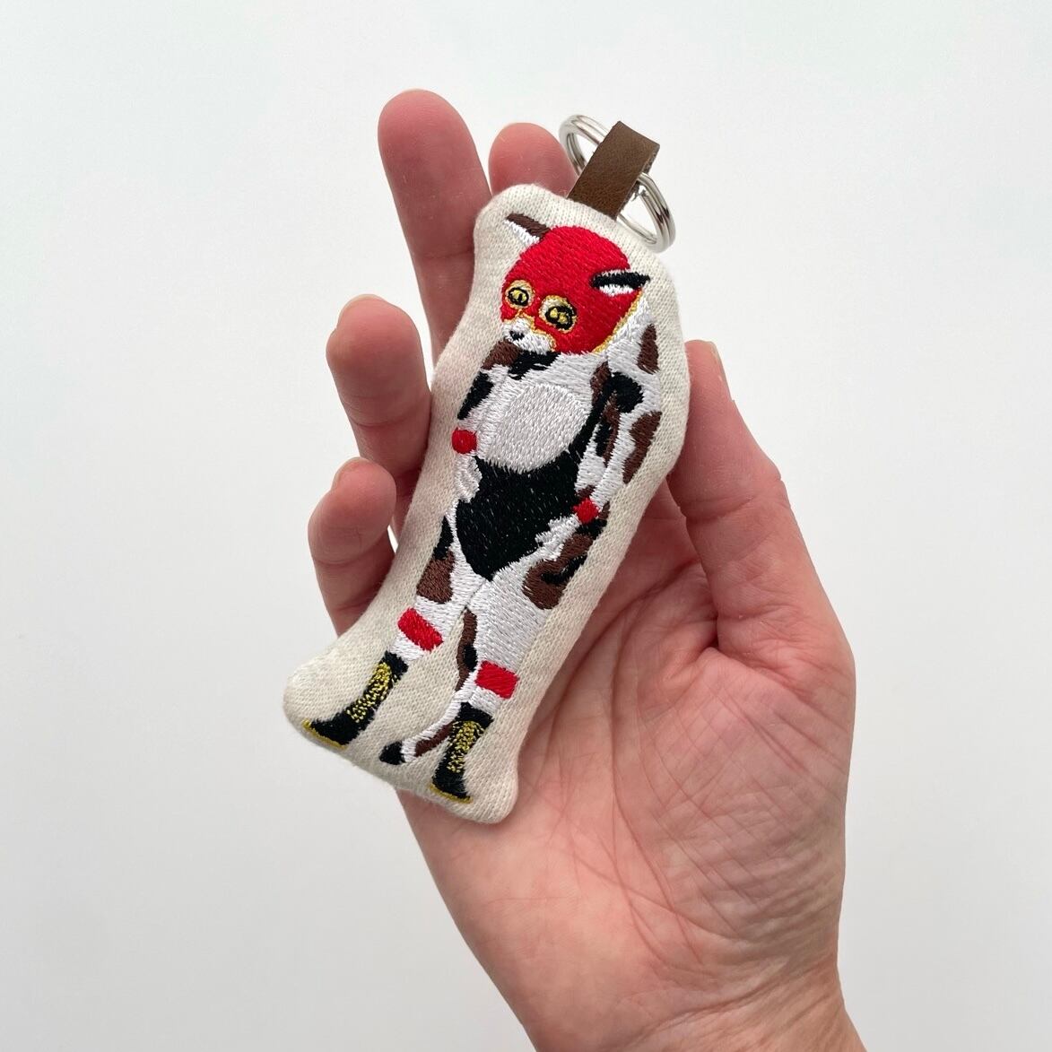 マスクネコキーホルダー【三毛猫/赤マスク】