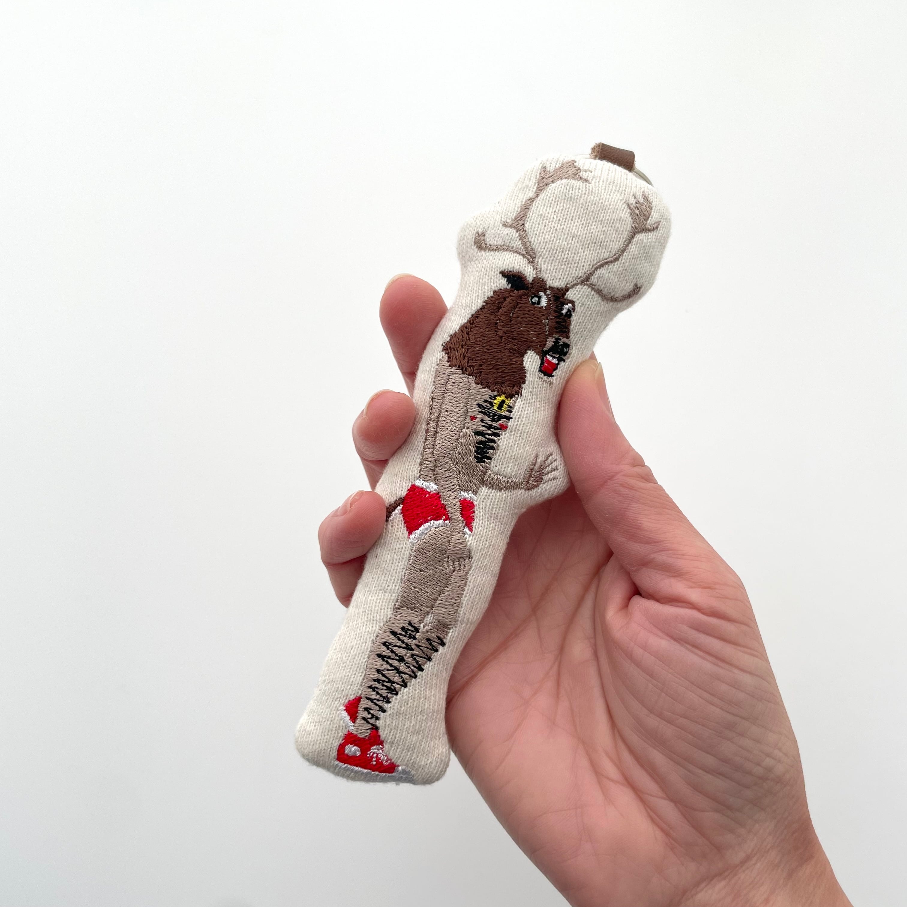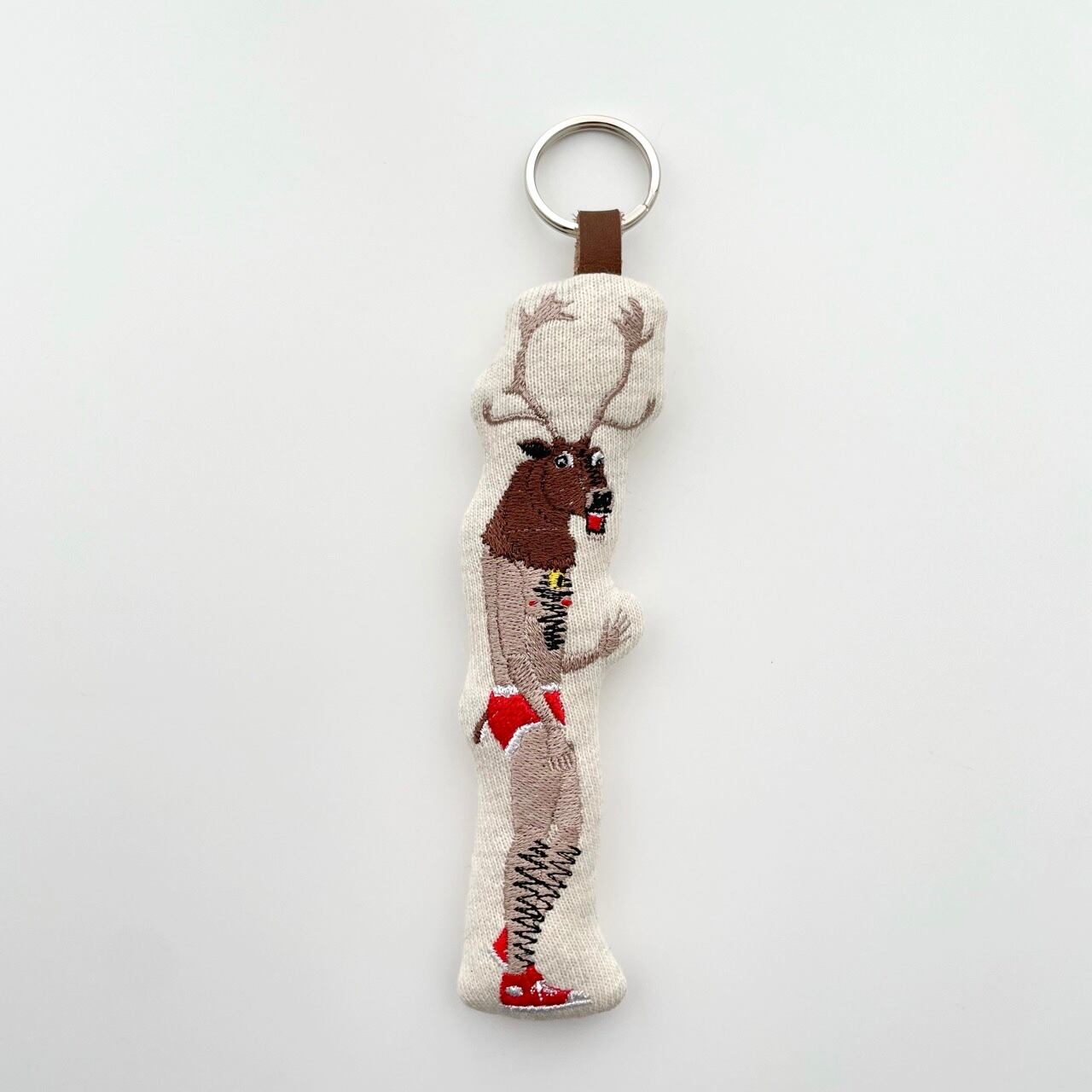 頭がトナカイで、体がおじさん。足元は赤のハイカットスニーカー。