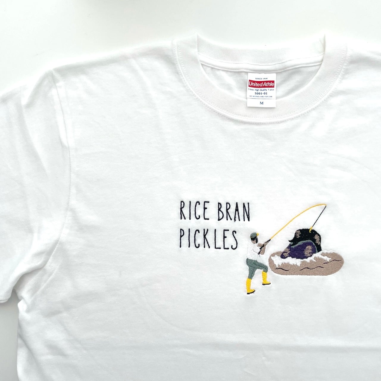 【RICE BRAN PICKLES】 コットンTシャツ/Mサイズ ※こちらはオーダー品となります。 他の方は購入されませんよう、お願いいたします。 【素材】 コットン100% 【注意点】 ・刺繍はミシン刺繍です。 ・お使いの端末や閲覧環境により、写真と実物の色味が多少異なって見えることがございます。ご了承ください。 【配送について】 クリックポスト(全国一律料金・追跡可)でお届けします。