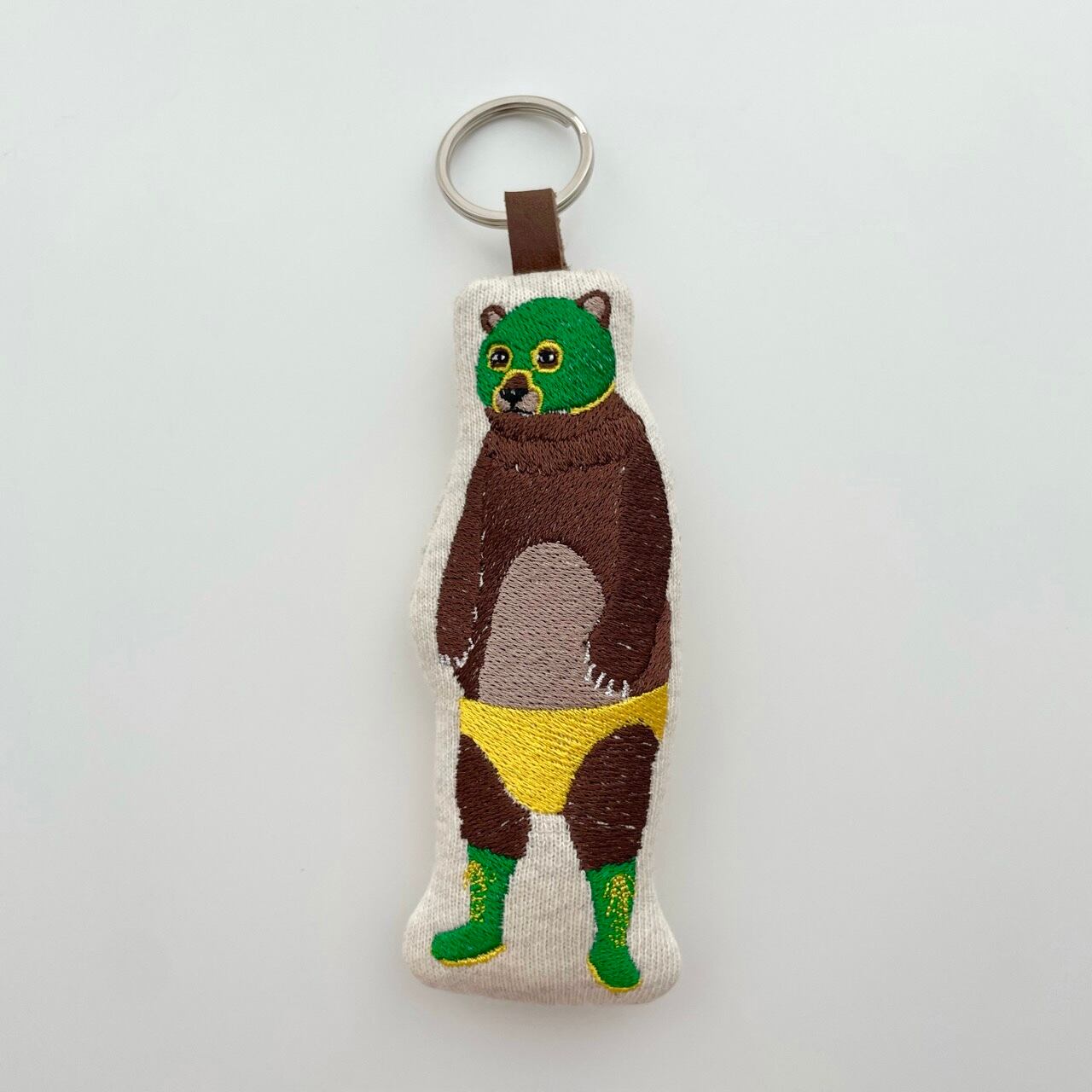 クマスクマンキーホルダー【ヒグマ/緑マスク】