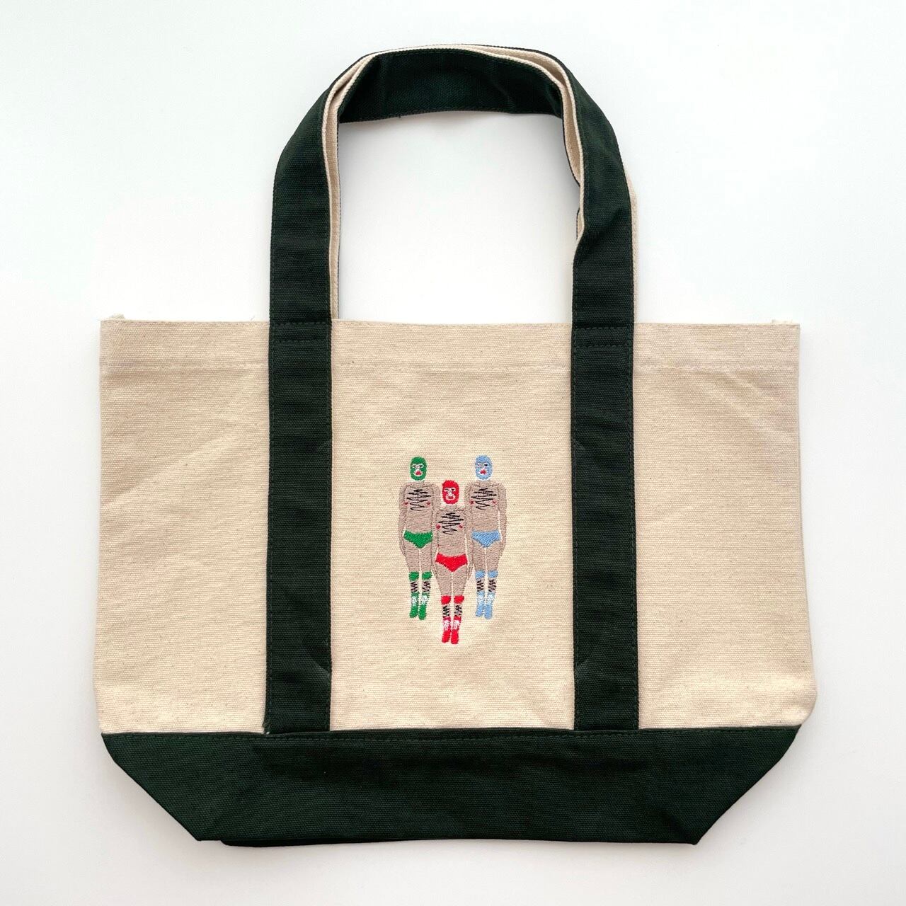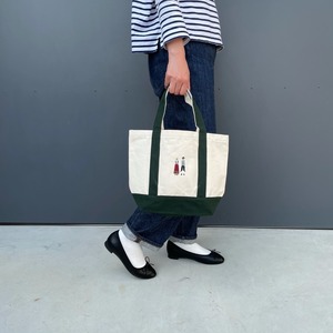 サイズ:タテ25.5cm×ヨコ36cm×底マチ13cm 持ち手37.5cm カラー:緑 容 量:約8L 素 材:綿100% 16oz 【注意点】 ・刺繍はミシン刺繍です。 ・お使いの端末や閲覧環境により、写真と実物の色味が多少異なって見えることがございます。ご了承ください。 【配送について】 クリックポスト(全国一律料金・追跡可)でお届けします。