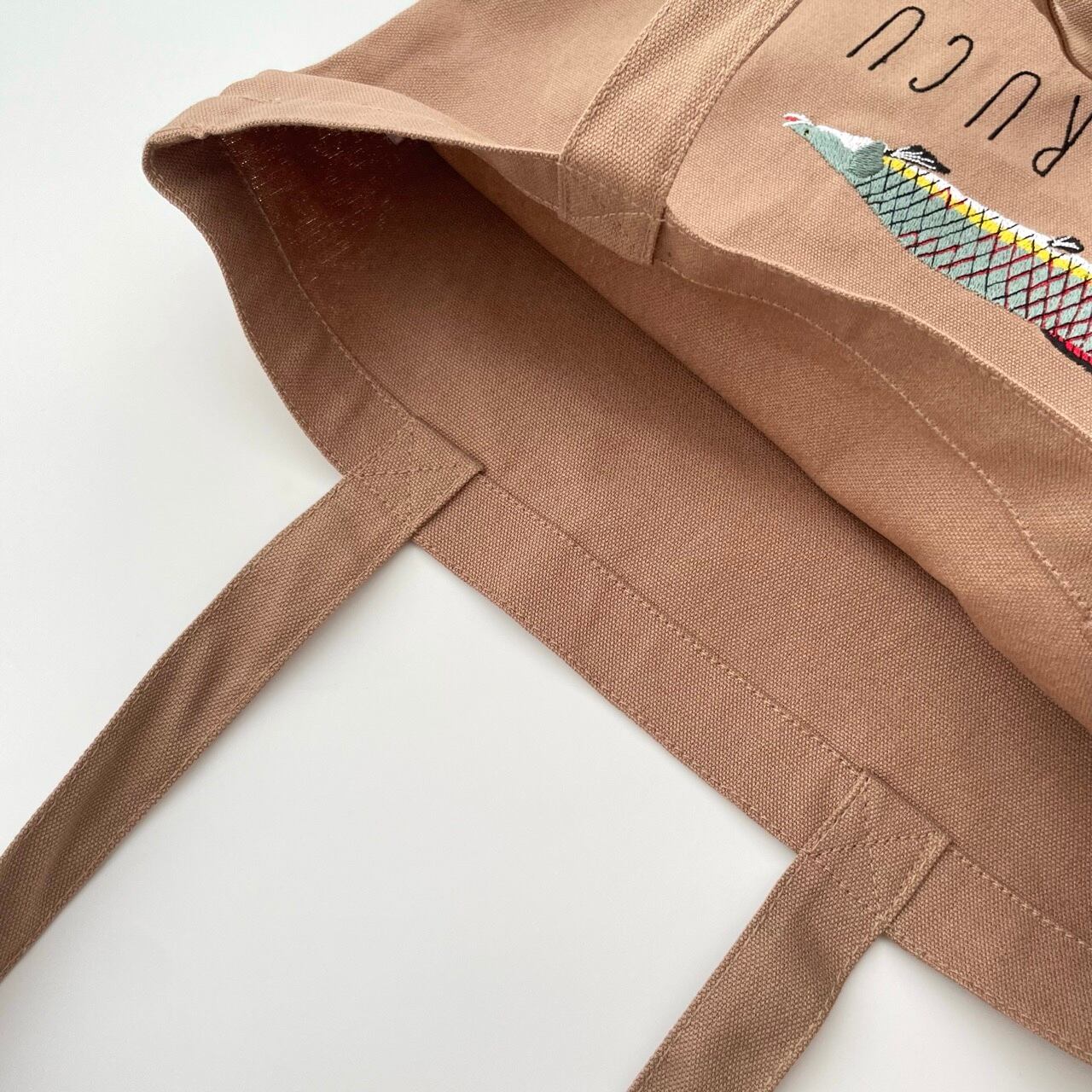 サイズ:タテ37cm×ヨコ24cm×底マチ12cm 持ち手55cm 容 量:約10L 素 材:綿100%キャンバス カラー:モカ 【注意点】 ・刺繍はミシン刺繍です。 ・お使いの端末や閲覧環境により、写真と実物の色味が多少異なって見えることがございます。ご了承ください。 【配送について】 クリックポスト(全国一律料金・追跡可)でお届けします。