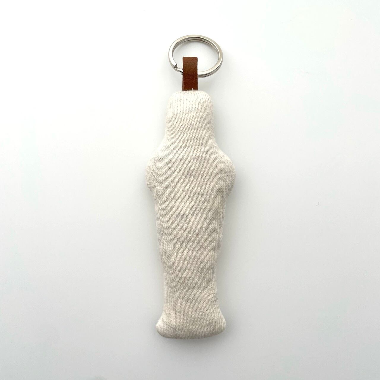 綿をたっぷり詰めて、握り心地の良いキーホルダーです。 【素材】 表:コットン 刺繍糸:ポリエステル 中綿:ポリエステル 【サイズ】タテ13.5cm×ヨコ5.0cm リング直径3cm 【注意点】 ・刺繍はミシン刺繍ですが、一点一点手作業で製作しております。 ・お使いの端末や閲覧環境により、写真と実物の色味が多少異なって見えることがございます。ご了承下さい。 【配送について】 クリックポスト(全国一律・追跡可)でのお届けとなります。