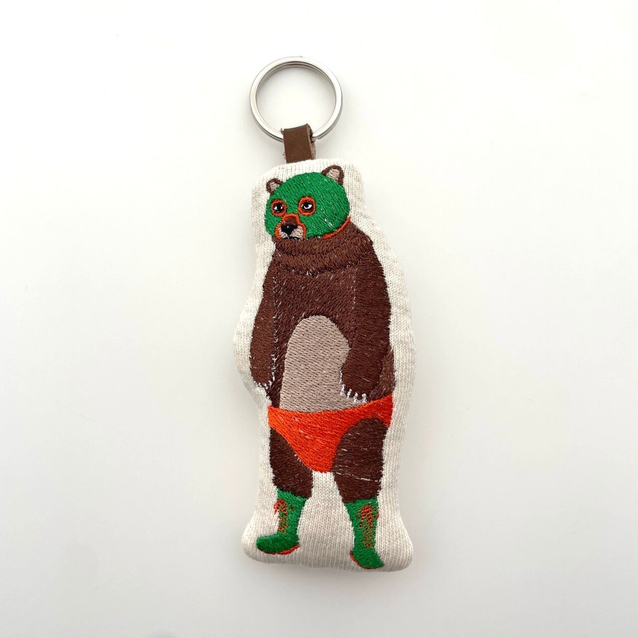クマスクマンキーホルダー【緑マスク×オレンジ】