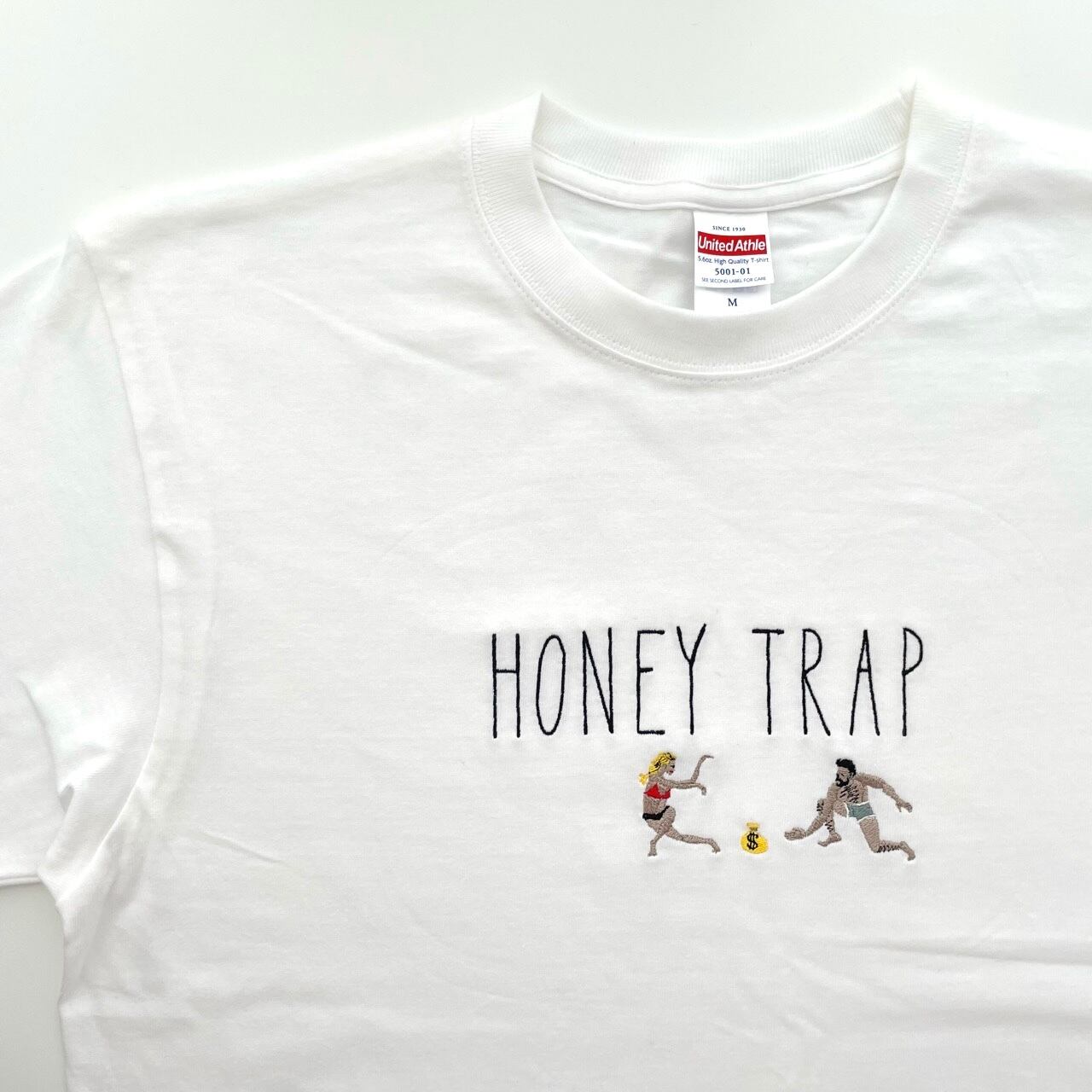 No.T-200【honey trap】 コットンTシャツ/Mサイズ ※プレゼントラッピング ※こちらはオーダー品となります。 他の方は購入されませんよう、お願いいたします。 【素材】 コットン100% 【注意点】 ・刺繍はミシン刺繍です。 ・お使いの端末や閲覧環境により、写真と実物の色味が多少異なって見えることがございます。ご了承ください。 【配送について】 クリックポスト(全国一律料金・追跡可)でお届けします。